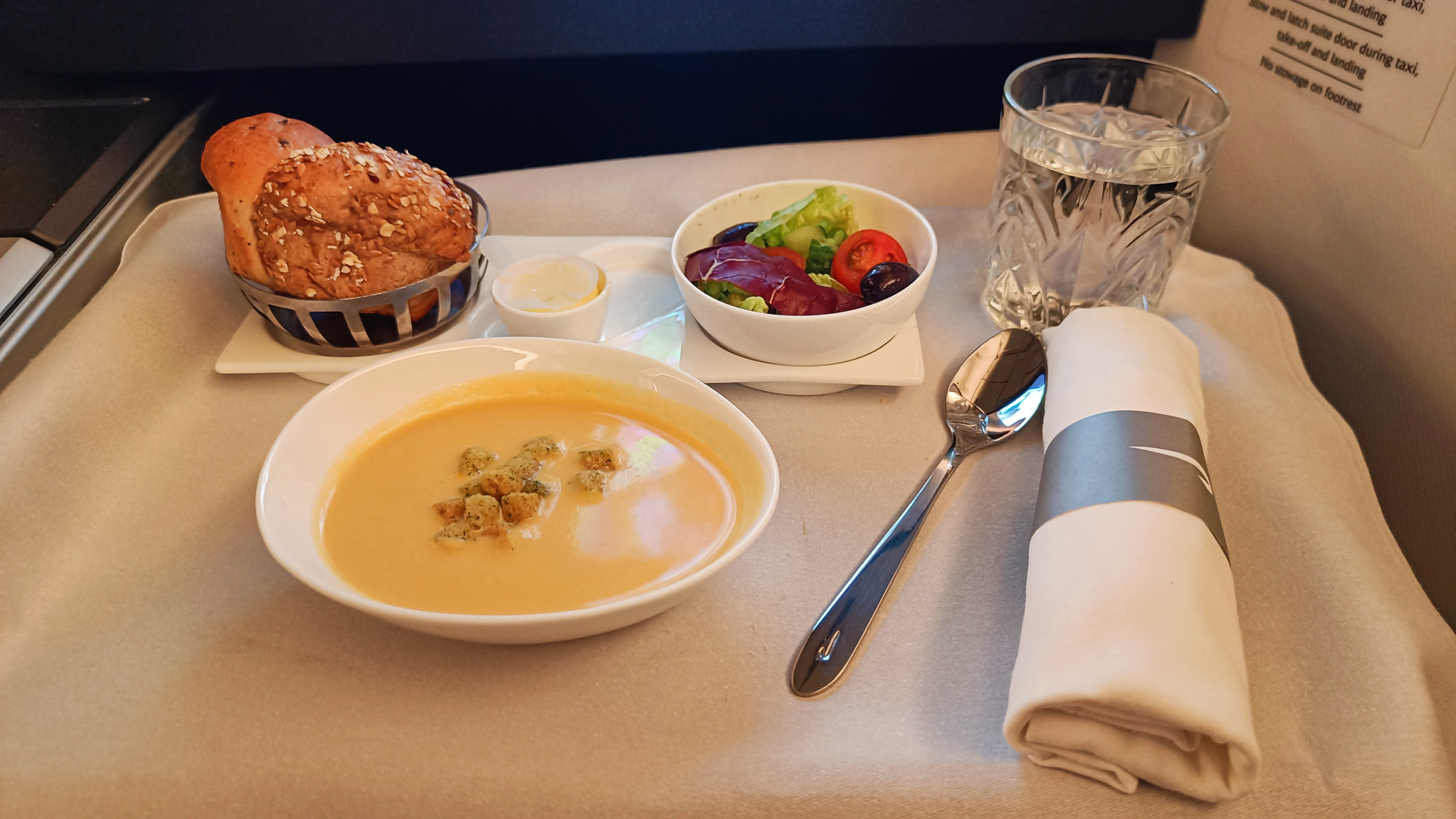 Still, champagne on arrival; a seat that turned into an actual bed (still didn’t sleep a wink though…); one’s choice of wine poured from an actual bottle; plus food that was, well, at least recognisably food (if not about to win a Michelin star any time soon) – can’t complain!