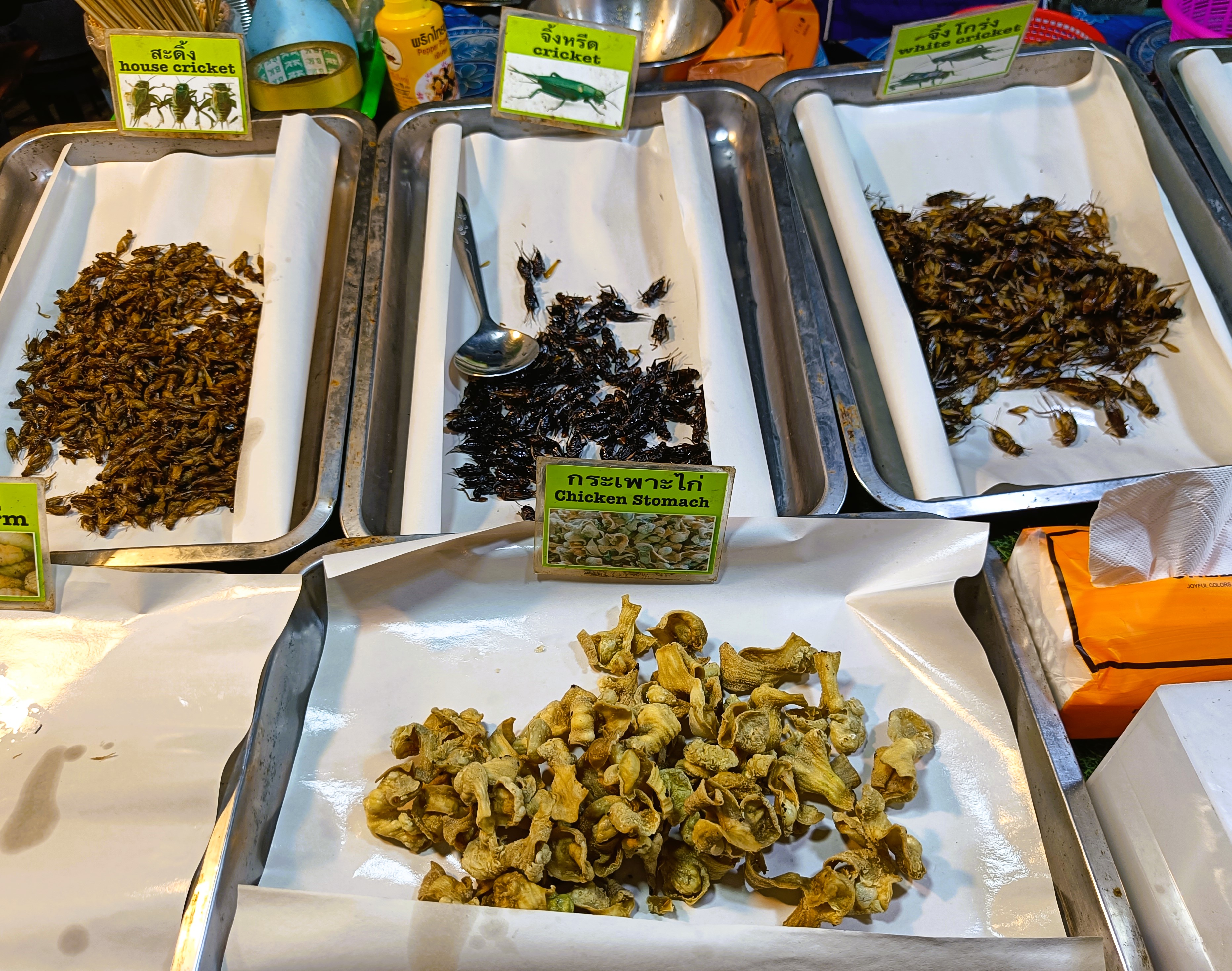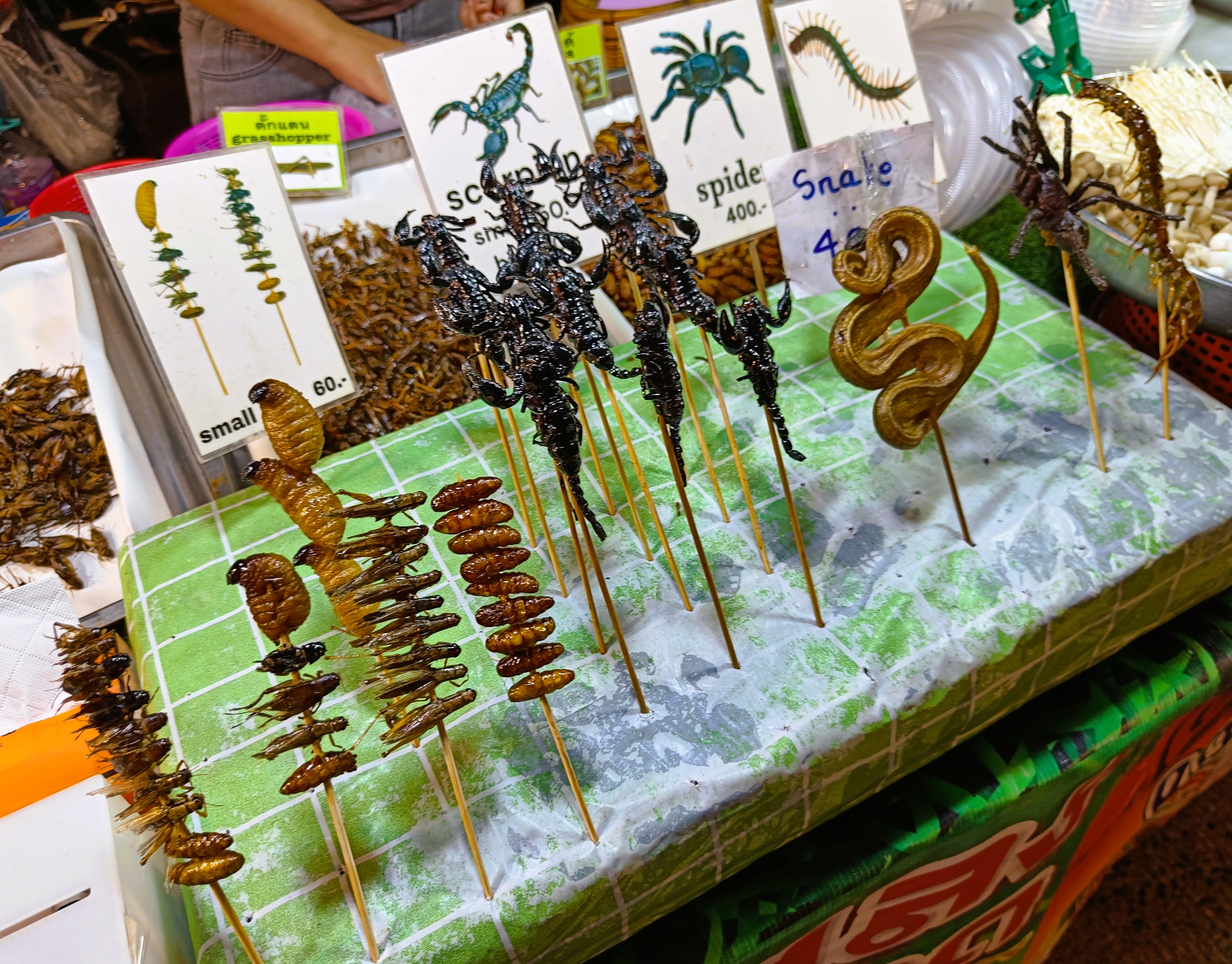 Not illegal, but also not particularly appealing were the insects on sale at the market. I’ve already been there, done that on previous travels, back in the day having eaten: silkworm, scorpion, snake, pig’s heart, chicken feet, cuttlefish, octopus tentacles, shark, camel, kudu, crocodile, ostrich, mopane worms and more – so absolutely nothing to prove to myself or others on that front these days!