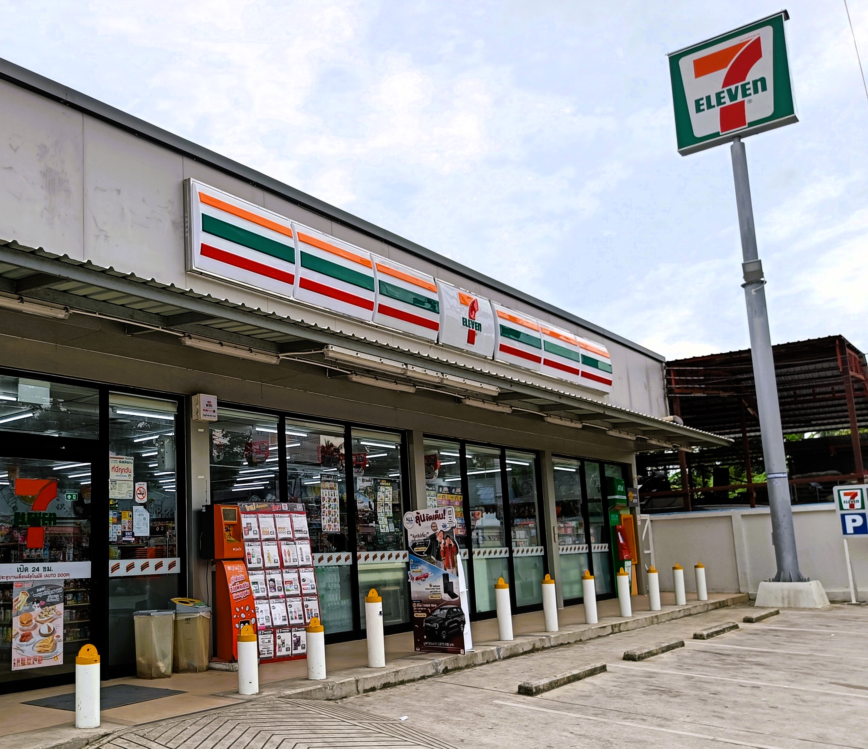 As soon as the skies settled, my long morning runs quickly became a reacquaintance of sorts with the Thailand I remember. Before long I found myself dodging semi-stray dogs with nefarious intentions; skirting corrugated-iron shacks, with vendors flogging everything from pyramids of coconuts to petrol decanted into old Fanta bottles; and passing moped-repair shops that seem to crop up no less than every half-mile. Or, failing that, a neon 7-Eleven** – long ubiquitous in towns and now steadily infiltrating into the countryside too. Along the way comes the familiar parade of half-finished houses, plastic-stool 50-baht eateries, the occasional Thai water buffalo luxuriating in a bath of rich brown mud, and tiny shrines tucked into gardens or guarding roadside verges. Not forgetting the ever-present images of the Thai royal family still presiding benignly over it all too.
