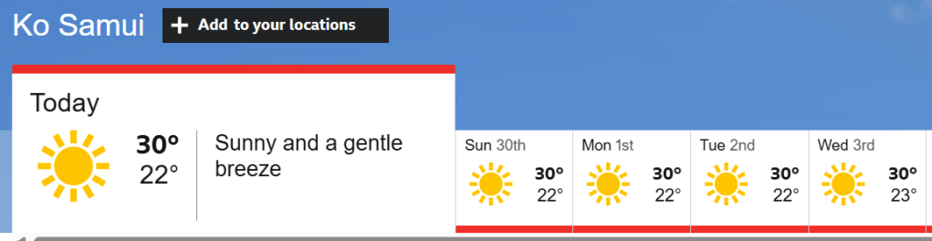 So yes, suffice to say I was feeling a bit sorry for myself for a moment there – not helped in the slightest by the sodding ATM in Lamai swallowing my bloody bank card on day two as well. Thank God for the Barclays in-app card cancellation feature, as well as my long-instilled habit (courtesy of Super Dad) of always travelling with plenty of emergency cash and back-up cards to hand. Add to that a case of jet lag that refuses to quit, plus the obligatory on-arrival case of the shits – and it’s clear that the Great Holiday Curse of 2025 hasn’t quite lifted yet. On the upside, there’s zero risk of sunburn any time soon at least.