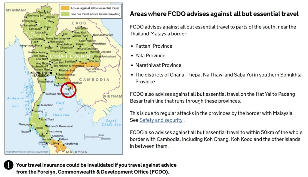 A mere four days before flying out, however, my Dad sent me this worrying little article. Turns out a border “skirmish” between Cambodia and Thailand had recently broken out, prompting cross-border shelling on both sides and the FCO advising against all non-essential travel to… exactly the bit of Thailand I was effing due to go to. Naturally.