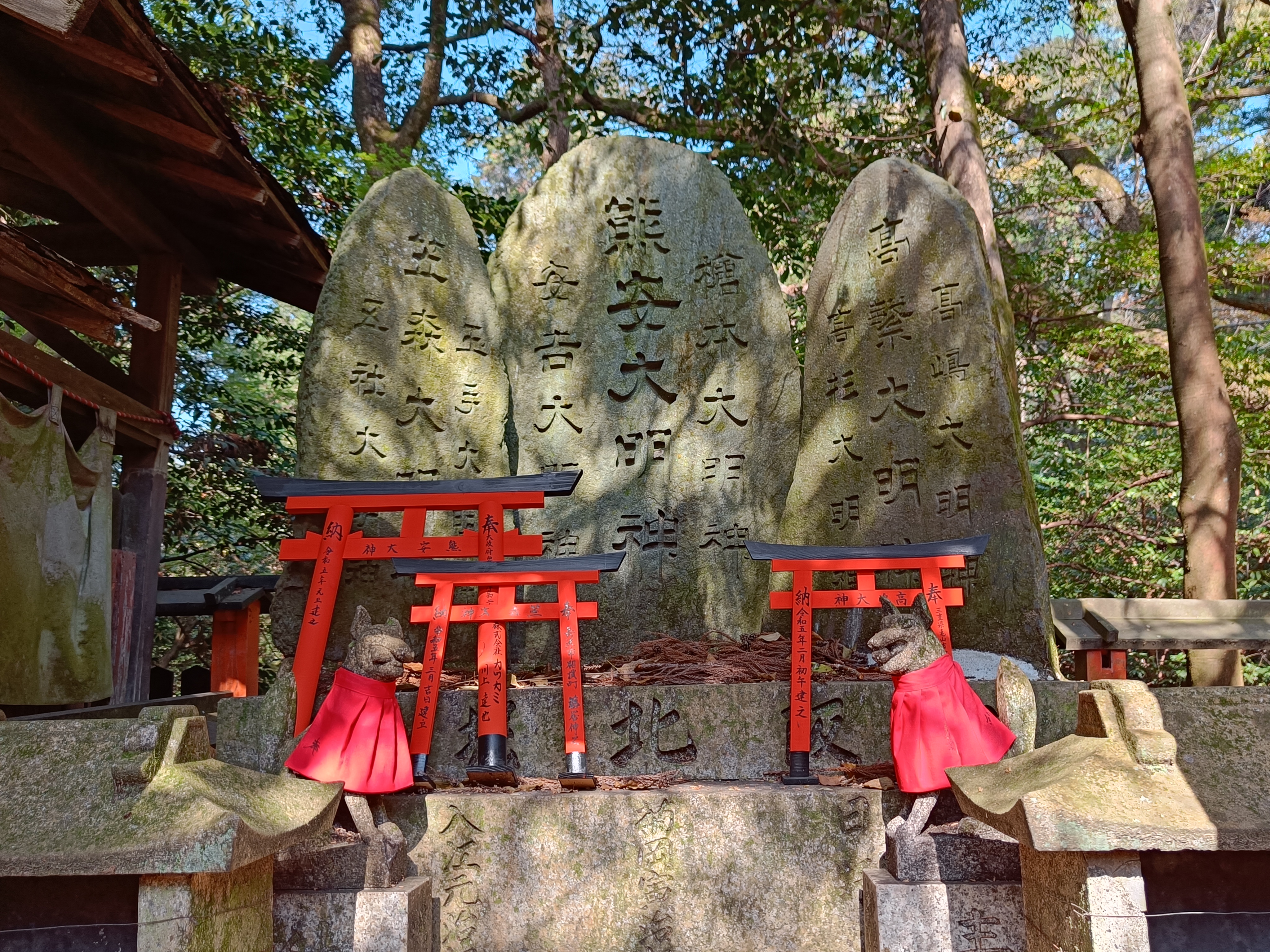Fushimi Inari is known for its thousands of vermilion torii gates, which stretch 4km into the forest of Mount Inari (I didn’t walk the whole route, but a fair old chunk of it). There’s a bit of fox theme going on here too – as they are thought to be messengers from the god Inari, the Shinto god of rice and sake (who sounds very much like my kind of guy… 😉 ).