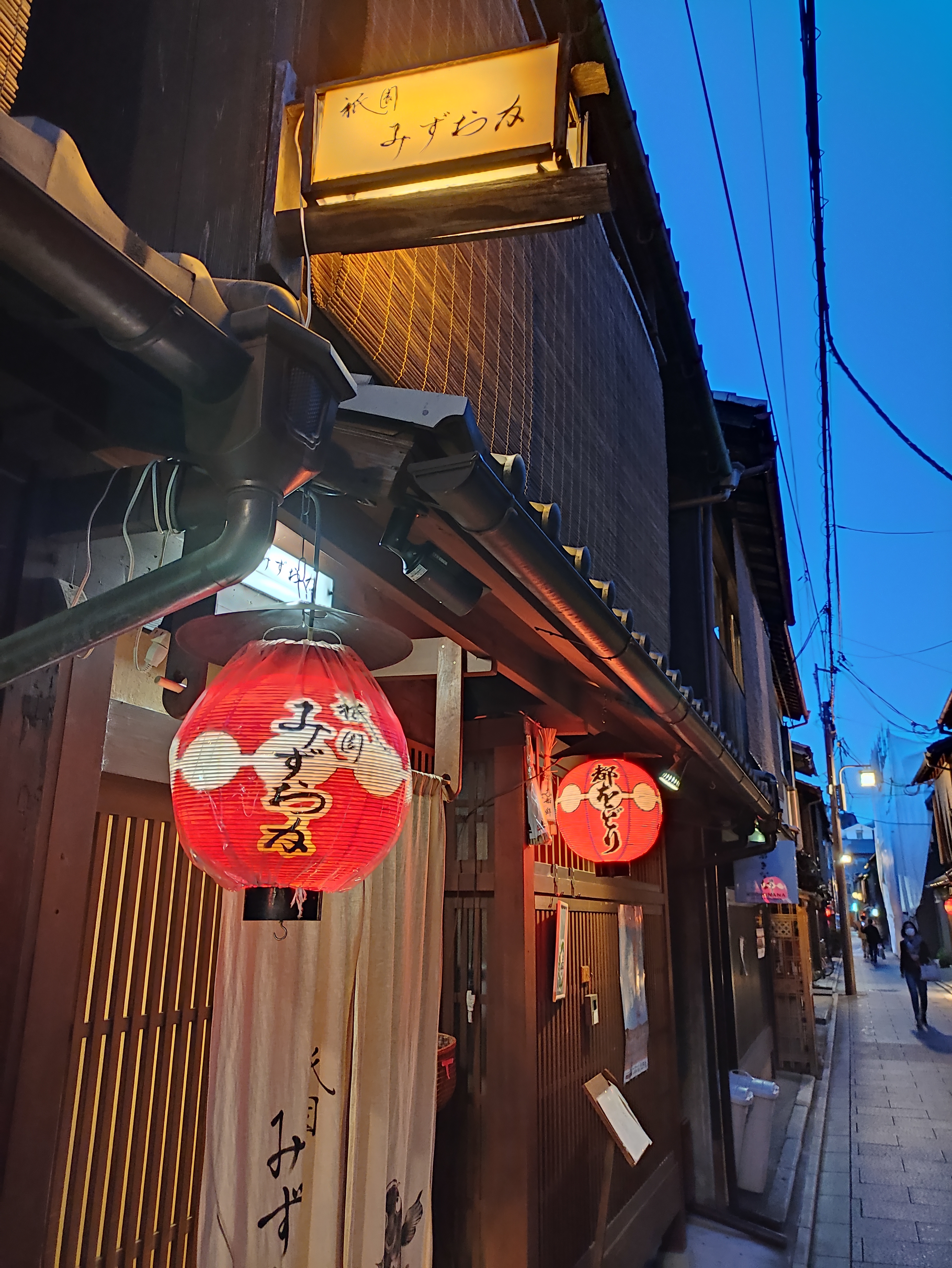 Gion is Kyoto’s geisha district, full of traditional wooden buildings, emblematic red lanterns and upmarket bars / restaurants that are booked out for weeks if not months in advance. I did spot one geisha on my wanderings, but that was my lot for the evening here.