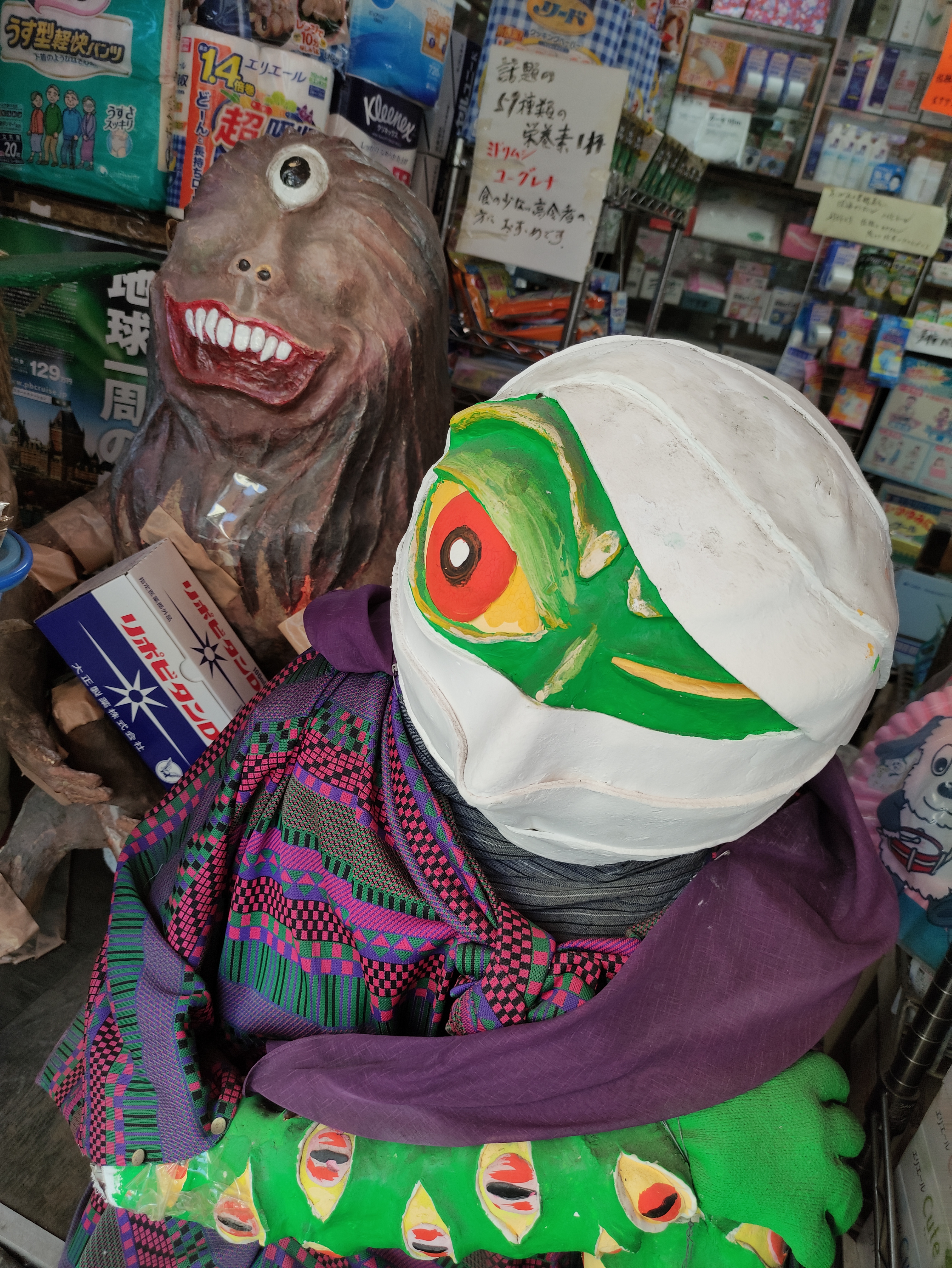 Back in Kyoto later that afternoon, I also passed by Yokai Street, which translates as ‘Monster Street’ in Japanese. As the legend goes, thousands of years ago, yokai or ‘monsters’ invaded the northernmost street of the old capital of Kyoto – and for that reason the owners of shops on this street now construct paper-maché monsters as a celebration of the legends (and definitely not as a cynical tourist draw on the cheap, which is otherwise what you might be forgiven for thinking here…). Here are some of the ones I met on my travels at any rate: