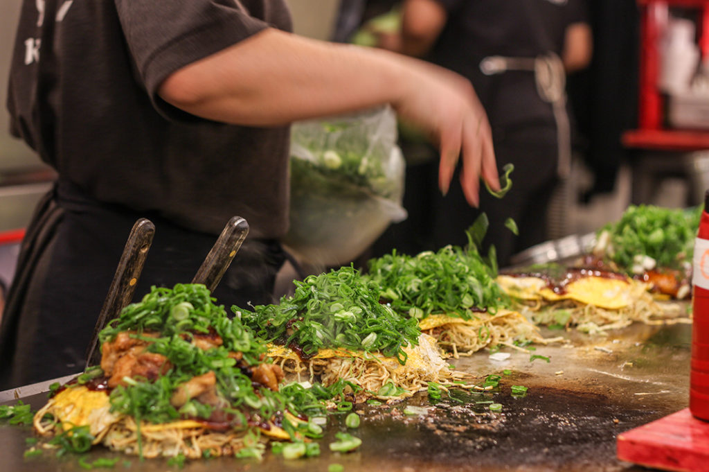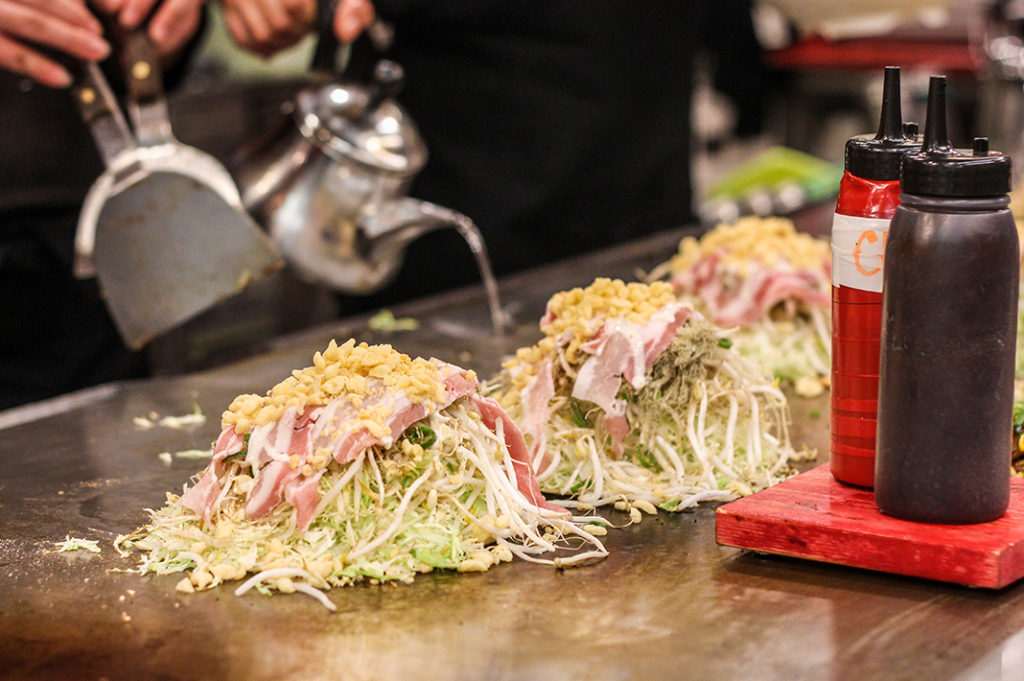 Also, I was being a little unfair earlier in saying that Hiroshima is only known for once having had the shit nuked out of it. The Mazda factory is also based here, apparently, and the city is also known for its okonomiyaki, which are basically a type of savoury Japanese half-omelette, half-pancake dish. It’s so popular here that there is one part of town set aside as an Okonomiyaki Village, called the Okonomimura, which I visited as well today (that’s my okonomiyaki below bottom left by the way – it was pretty nice!):