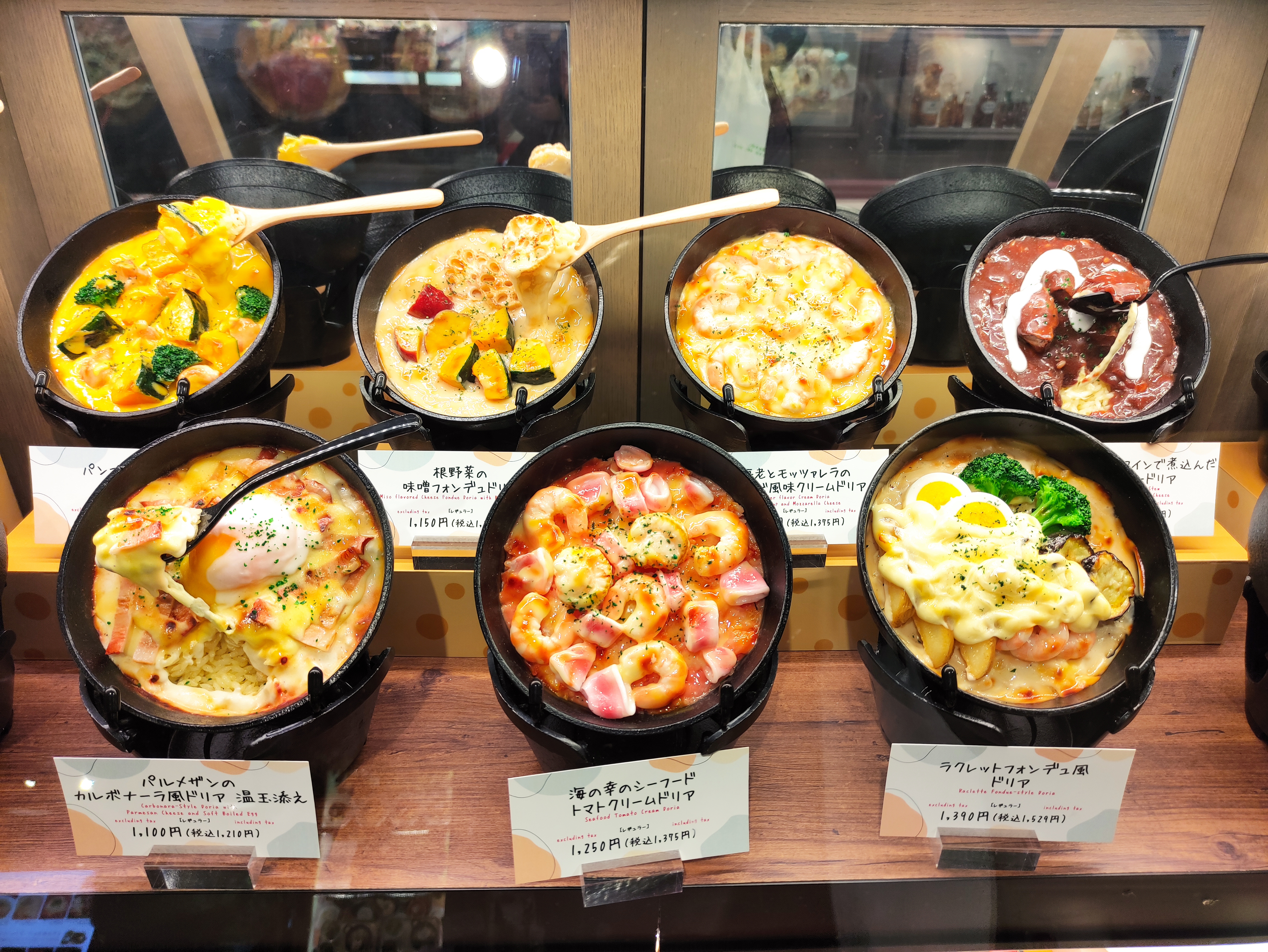 Anyhoo, last stop of the day for me was one of the city’s many food courts, where I stopped in for my third matcha latte of the day (weirdly, I didn’t think I liked matcha before I came here, and now its proving a burgeoning addiction…). Bizarrely enough, it turns out that a certain strata of Japanese restaurants have a “thang” for replicating the various dishes they have on offer in plastic format and setting them out in public view as a way of enticing people through the door. This is in spite of the fact that each and every one of the dishes invariably ends up looking disgusting – spaghetti carbonara in particular lends itself poorly to rendition in plastic form). The mind truly boggles – I mean, there must be literally a whole cottage industry out there responsible for crafting these abominations… Is each model unique to the restaurant, for example, or does each place choose from a set menu (no pun intended!) of available local and international dishes…? How and where do you train as a plastic food artiste (and – most importantly – can I get in on that gig….??).