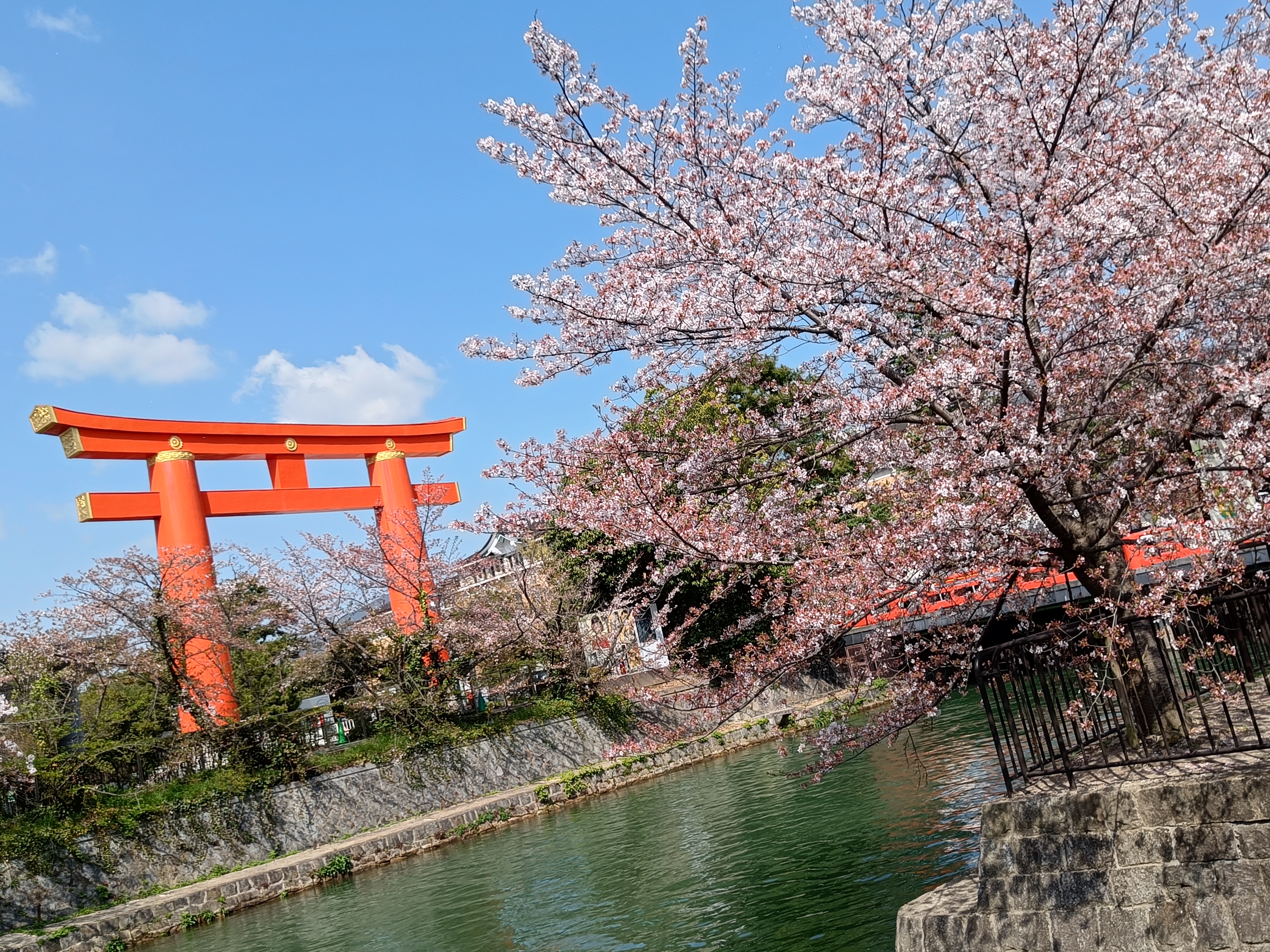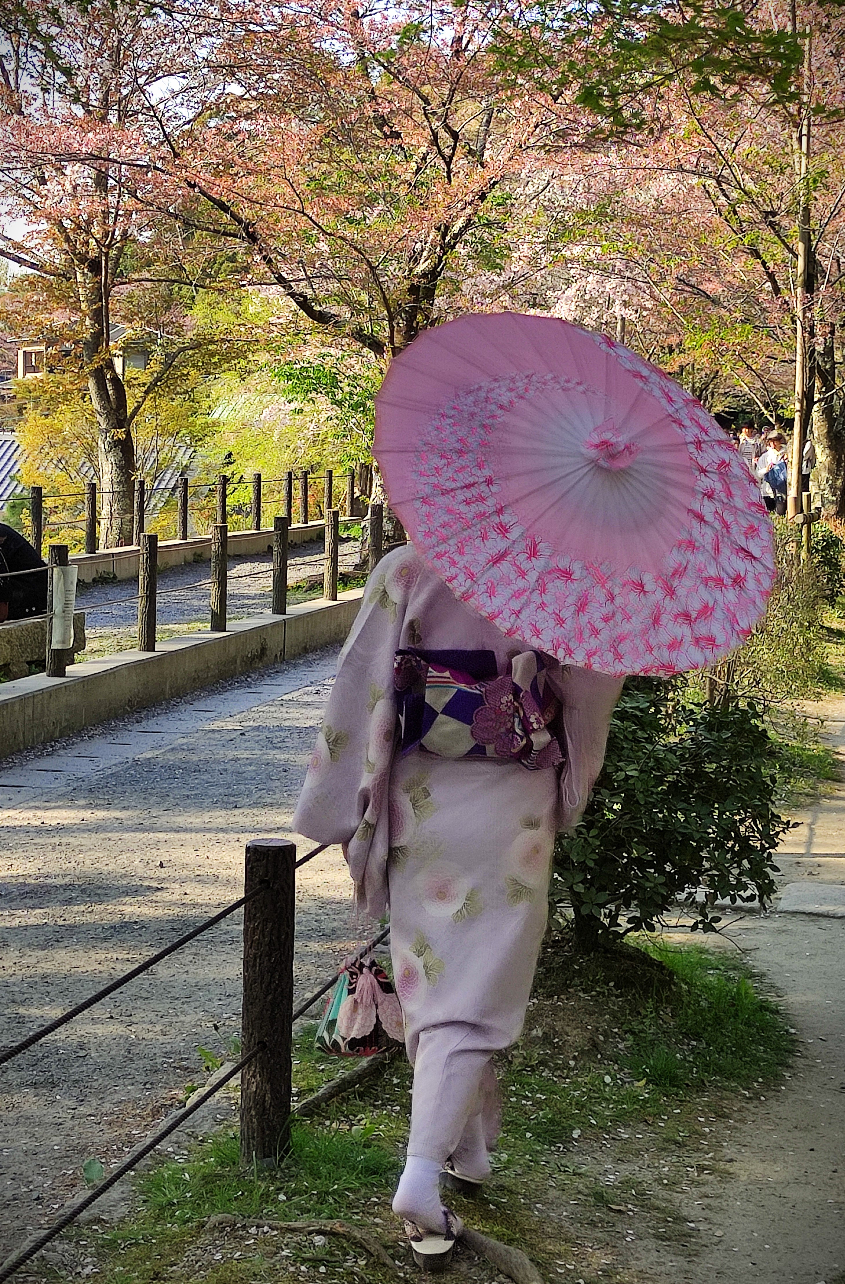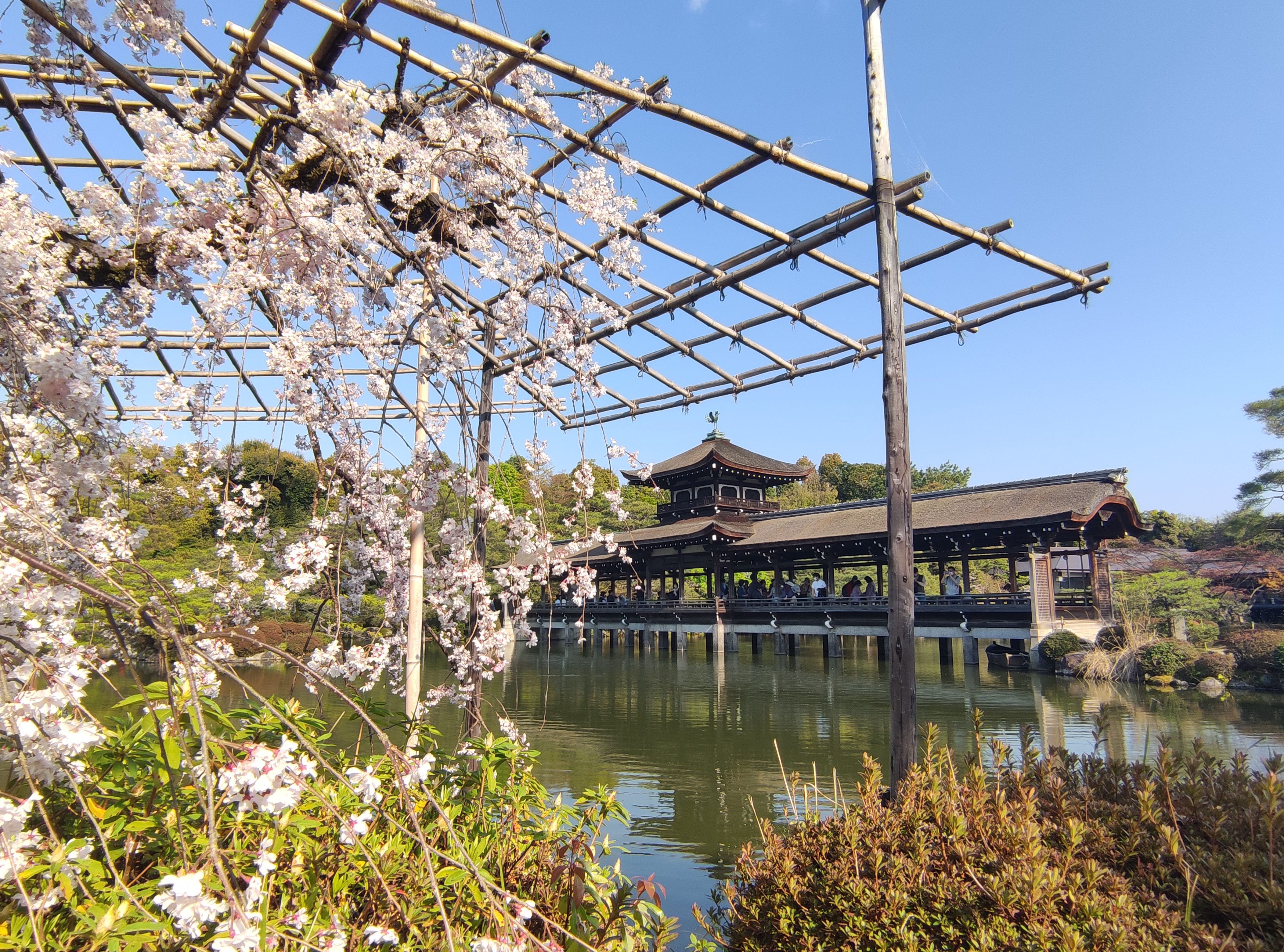 For the most part, there was still blossom about – albeit more on the ground that on the trees in some places, where a couple of days ago they’d have all been in fully-fledged bloom. Luckily for me, however, the trees at Heian Shrine typically bloom a few days later than across the rest of the city, and indeed there were some truly beautiful, archetypical Japanese-style garden scenes here in particular (most of the below pics are from this particular spot in the city).**