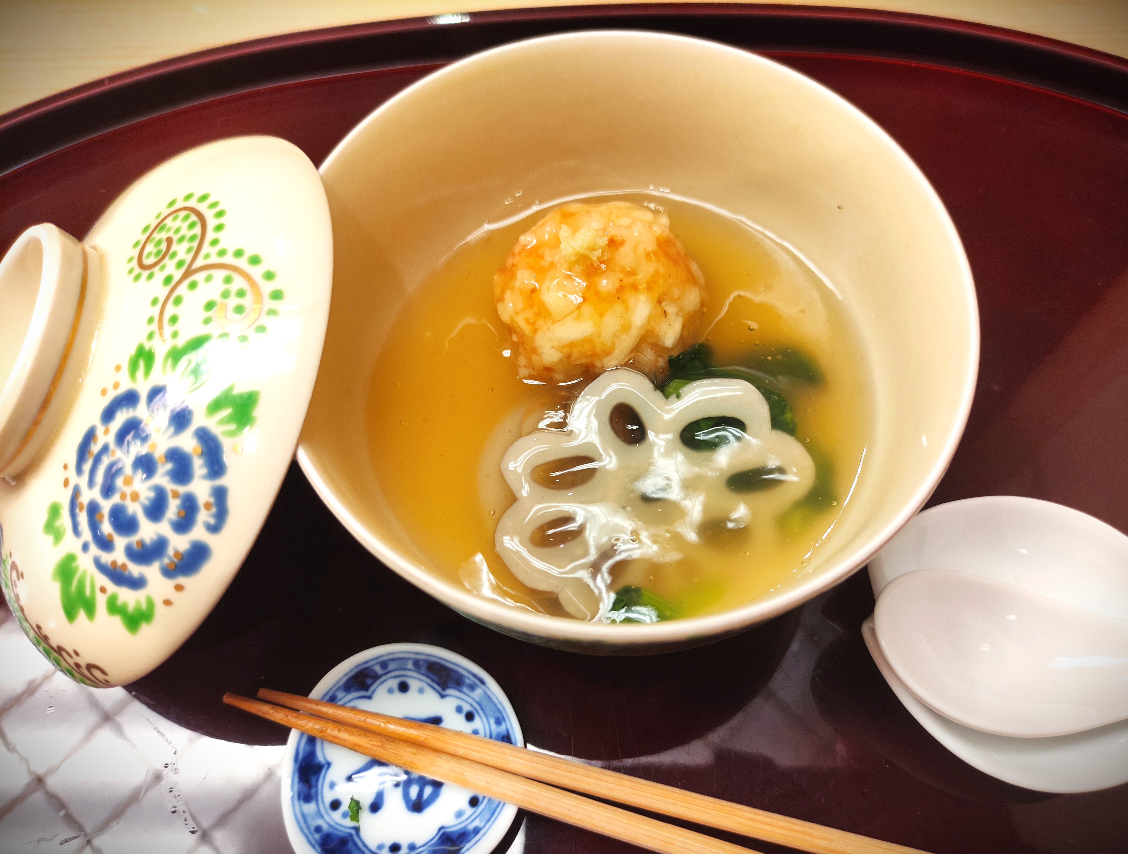 But I’ve also gone off piste and pushed the boat out too, on the odd occasion. Today is quite literally piddling it down, so I took strategic advantage of this fact to schedule my one big blow-out meal of the trip. Kyoto is known for its kaiseki cuisine, which basically means a set course meal chosen by the chef to highlight a specific seasonal theme. You are very much spoilt for choice on where to eat out in the city, but in the end I landed upon the mid-range Pontacho Fujita in Kyoto’s downtown dining district (think yet more wooden houses, red lanterns and curtains over the doorways, etc.). I’d chosen this place pretty much for the sole reason that they had one of the more easily navigable reservation sites (by no means a given in Japan!) and the ability to book for just the one person, rather than a two head minimum – but thankfully the food was amazing here as well! I’d love to be able to describe what I had (and the chef did make a point of carefully explaining each and every dish to me at the time…), but with all of 11 courses in the mix, I honestly can’t remember the details now… Suffice to say though, it was all bloody lovely – even the tofu course (not my bag usually, but in a whole other league of its own in Japan, at any rate).