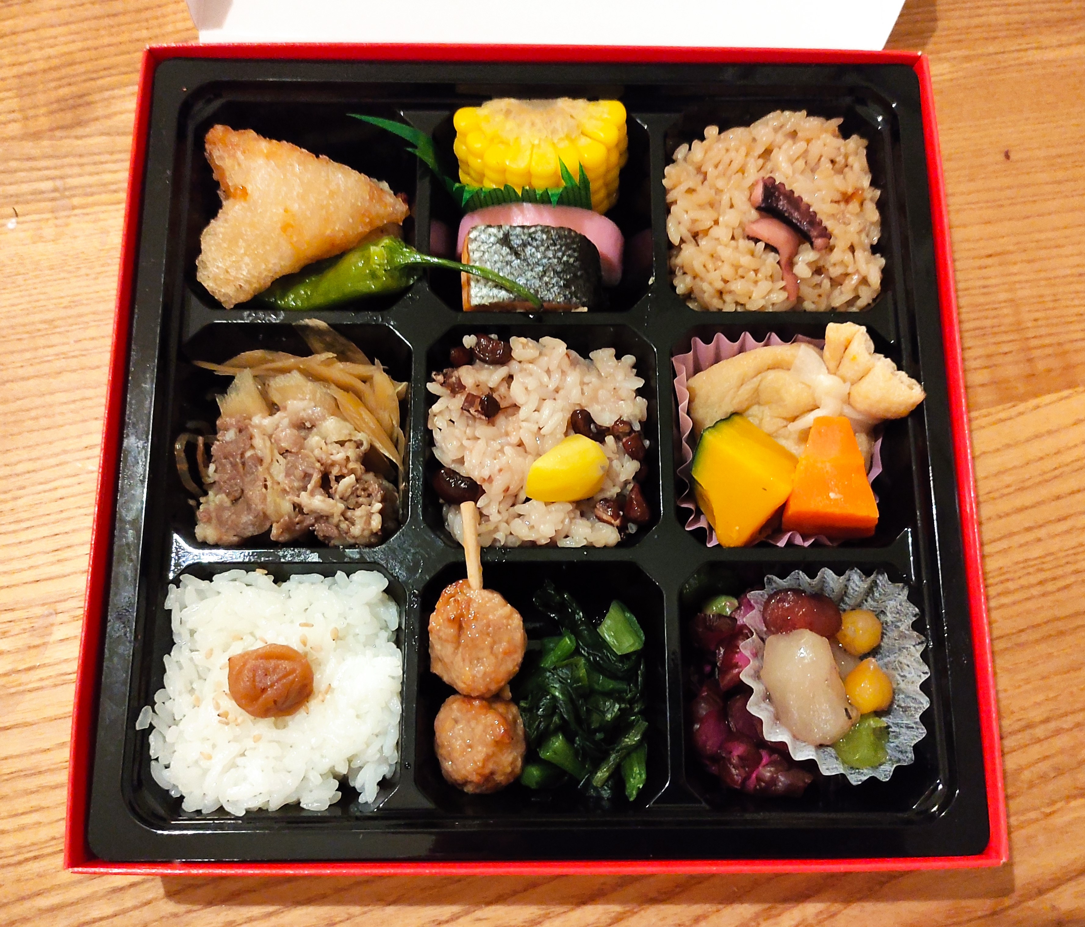 Until I did the maths, that is, and realised it would actually still be cheaper to just go for ramen, or to buy a lunch Blue Peter style (i.e. one that someone else made earlier). Which brings us nicely onto ebiken. These are what basically inspired the ‘bento box’ in the UK, which really doesn’t exist as a concept in Japan in the same way – i.e. you wouldn’t go out to eat bento at a fancy restaurant, for example. Rather, ebiken are basically the Japanese equivalent of a day-to-day sandwich or packed lunch – something you might pull together for a picnic or buy ready-made for a long train journey. This is kind of what they look like – I do love the fact they many of them are gift wrapped too!
